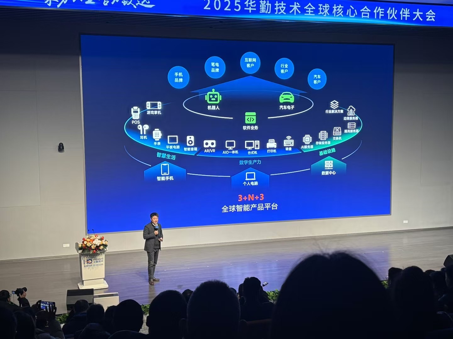 在大会上宣布了“华勤技术3+N+3全球智能产品大平台”的战略升级。首个“3”指的是公司三大成熟的核心业务:智能手机、笔记本电脑和数据中心业务;“N”是指由这三大业务衍生出的多品类的产品组合,涵盖智慧生活、商业数字生产力以及数据中心全栈解决方案;最后的“3”则代表了公司正在积极拓展的三个新兴领域:机器人、软件和汽车电子业务。